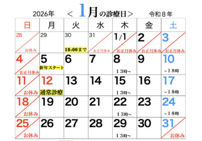 • 1月1日(木)〜1月4日(日):年始休診